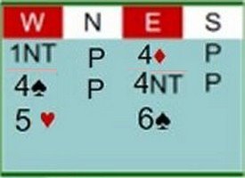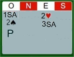 Allunga le CUORI a 6 con mano debole. Se avesse avuto 7+ avrebbe fatto la GRANDE TRANSFER Sostanzialmente la risposta a 6 dice ho 6 carte e 6 punti |