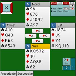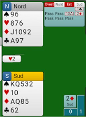 CONTRATTO 2 QUADRI - ATTACCA OVEST 2 CUORI prese certe 1 cuori 1 quadri 1 fiori 1 picche ( + 1 quinta) = mancano 3 prese provare l'impass alla Q di quadri e poi le altre quadri buone occorre fare 3 tagli sempre dalla stessa parte : quale ? Sembrerebbe nord : tagliare 2 picche e 1 CUORI ma si deve tornare in sud questo e' il motivo per cui non si deve prendere di ASSO di cuori Questa la smazzata:LINK X GIOCARE: https://tinyurl.bridgebase.com/yckrrysv