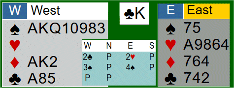 OVEST prende di K gioca il 3 di picche per il 7