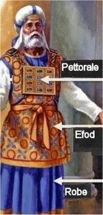 Esodo 28, 15-30 Metterai sul pettorale del giudizio l'Urim e il Tummim;e staranno sul cuore di Aaronne quando egli si presenter davanti all'Eterno. Cos Aaronne porter il giudizio dei figli d'Israele sul suo cuore, davanti all'Eterno, per semp re. (anche in:) I libro di Samuele, 10:22 II libro di Samuele, 5:23 Non vi sono descrizioni della forma di urim e tummim | |